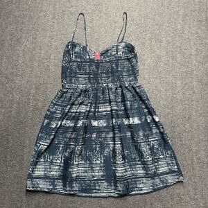 Roxy Shore Thing Pleated Dress Womens XL Blue/White Babydoll Spaghetti Straps