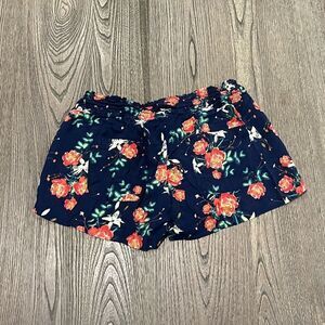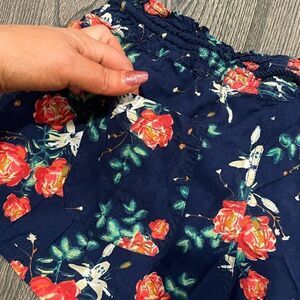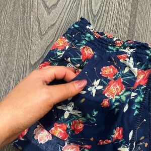 Roxy Shorts Floral Drawstring Waist Viscose Navy Red White Large