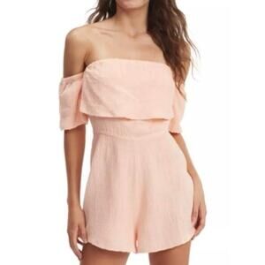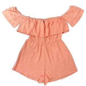Roxy Size L Another Day Off The Shoulder Romper Linen Blend Coral Beach NWT