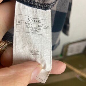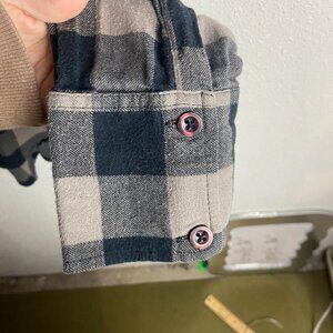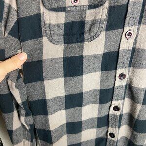 Roxy Size Large Flannel Gingham Plaid Button Down Shirt Grey Black Grunge Fall