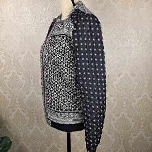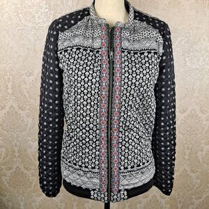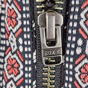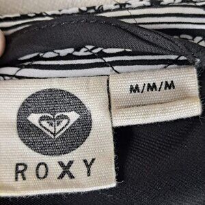 Roxy Size Medium Full Zip Quilted Black & White Patterned Jacket Pink Accents