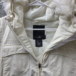 Roxy Ski Jacket White Faux Fur Hood Size 6