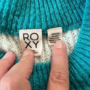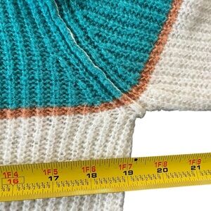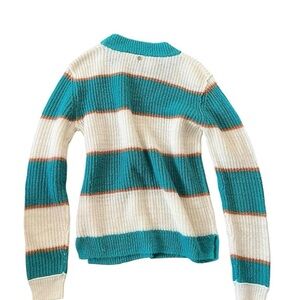 807-Roxy Soft and warm striped sweater in white and green, featuring a relaxed fit and a unique, boho vibe finds #stripedsweater #roxy #70s