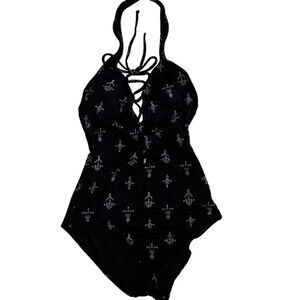 Roxy Strappy Love 1 piece halter low open back, ties in front tribal motif sz S