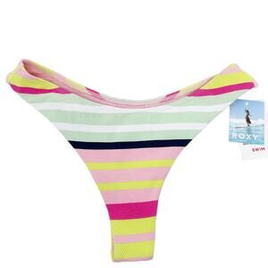 Roxy Stripe Soul Cheeky Bikini Bottoms, Rainbow Stripes, NWT Large
