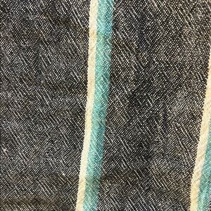 Trendy pants with teal and white stripes. Features a drawstring waist for comfort.