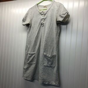 Roxy Striped Dress Black White Medium Pockets Casual Pullover