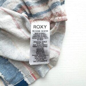 Stay cool and stylish in this breezy Roxy sundress featuring a stretchy smocked bodice and colorful vertical stripes. Adjustable spaghetti straps for a custom fit. Lightweight and perfect for beach days, vacations, or casual wear.
