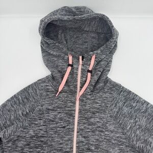 Style: Roxy Sweater Women XL Heather Gray Full Zip High Neck Hooded Fleece Pockets