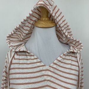 ROXY SWEATSHIRT WOMENS XS STRIPED TASSEL HOODIE PULLOVER KANGAROO POCKET V NECK