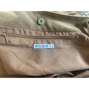 The bag features a square shape with a button closure and a shoulder strap for easy carrying. The interior is lined with soft cotton and comes with a pouch accessory. The bag is lightweight and has a solid pattern. It is not customized and has no vintage elements. This Roxy hobo bag is part of the product line and was manufactured in China.