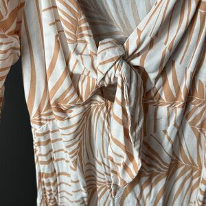 Roxy Tan & White Palm Tree Print Tie Front Casual Summer Midi Dress