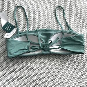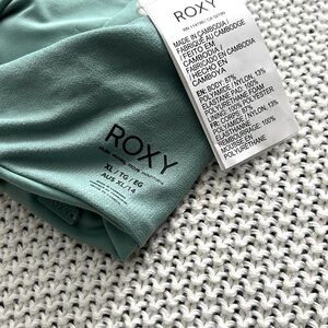Chic Roxy swim top. Features a striking teal shade. Ideal for sunny beach outings.
