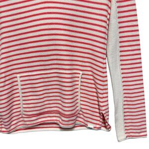 • Roxy thick knitted striped hoodie sweater sweatshirt popover pullover jumper with pockets in ivory white cream and red