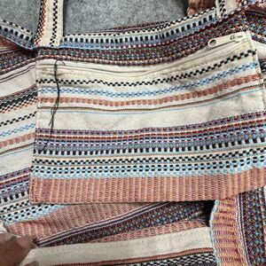 Roxy Time Is Now Canvas Tote Bag Black White Striped Slouchy Gym Beach Bag
