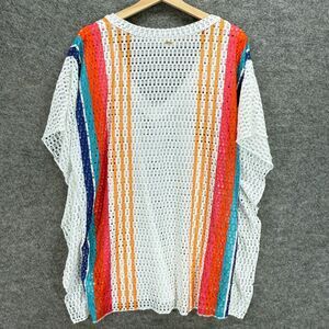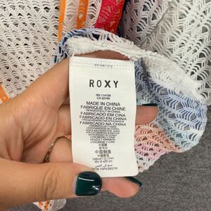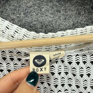 Roxy Top Women S Small White Striped V-Neck Crochet Short Sleeve Pullover Casual