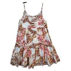 Roxy Tropical Sea Floral Tiered Flutter Mini Babydoll Dress Swim Coverup Medium