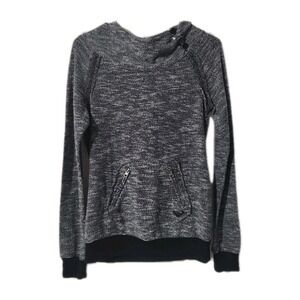 Roxy Tweed Style Pullover Hoodie With Zip Pockets Gray Size Small