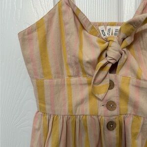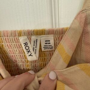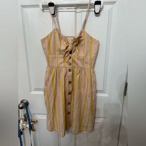 Roxy Under The Cali Sun Stripe Dress Sz Small Yellow Midi Bow At Bust Surfer