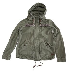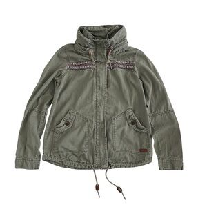 Roxy Utility Jacket Tribal Trim Boho Woben Trim Green size S