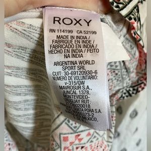 🌞Roxy V Neck White Boho Print Tie Back Keyhole Long Sleeve Flowy Blouse #Gr