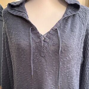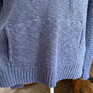 Roxy blue sweater with a V-neck and hood, a kangaroo pocket and textured knit.