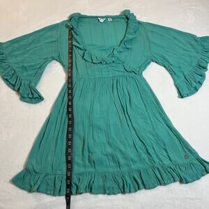 Roxy V-Neck Ruffle Trim Mini Dress Size X-Small Wide Sleeve Beach Boho Colorful