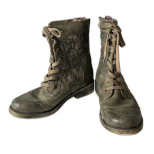 Roxy Westward Taupe Brown Quilted Vegan Leather Lace Up Short Boots Size 8.5