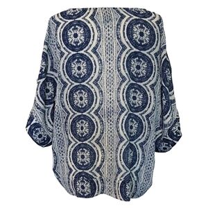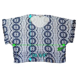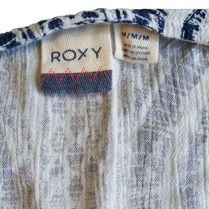 Roxy White Blue Kaleidoscope Boxy Kimono Sleeve Top Lightweight Boho Beach