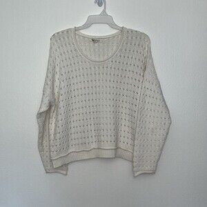 Roxy Womans White Sweater Boho Boxy Beachy Medium