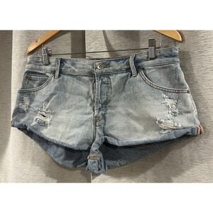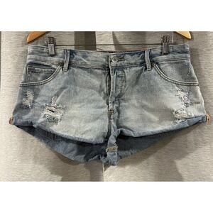 Roxy Women's 31 Light Wash Distressed Denim Shorts Button Fly