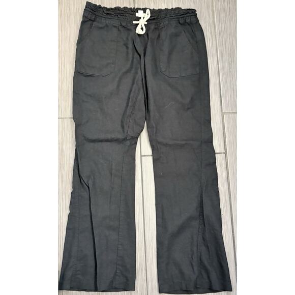 Roxy Women’s Black Linen Blend Wide Leg Pants Size XL Lightweight Breathable