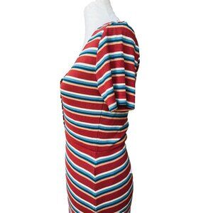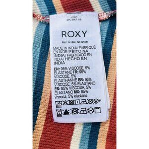 Dive into effortless style with the Roxy Women's Bring It On Short Sleeve Dress, a versatile addition to your wardrobe that's perfect for any casual occasion. Featuring a flattering bodycon fit with a midi length, this dress boasts a playful striped pattern in a multicolor palette, complemented by a chic V-neckline and a collarless design for a contemporary edge.