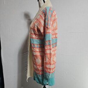 Roxy Women's Cardigan Sweater Aztec Tribal Pattern Tan, Peach, Teal, cream size XS