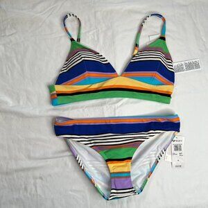 Roxy Womens Color Jam Striped Tank Top & Hipster Bikini Beach Swim Set XL