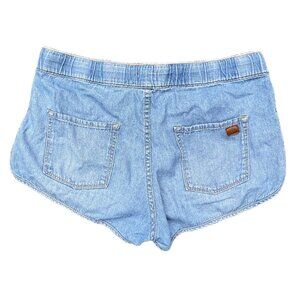 Stay effortlessly stylish and comfortable with these Roxy Loose Comfy Denim Shorts in size Medium. Crafted from soft, breathable denim, these shorts feature a relaxed fit perfect for casual outings, beach days, or lounging in warm weather. The elastic waistband with a drawstring tie ensures a customizable and secure fit, while the classic light blue wash adds a timeless touch to your summer wardrobe. Functional side pockets and a back pocket with the iconic Roxy leather logo patch offer both convenience and authentic brand charm. These shorts are pre-loved but remain in great condition, ready to bring laid-back comfort and easy style to your everyday looks. Ideal for those who love a blend of comfort and casual chic, these Roxy denim shorts are a must-have staple for your seasonal collection.