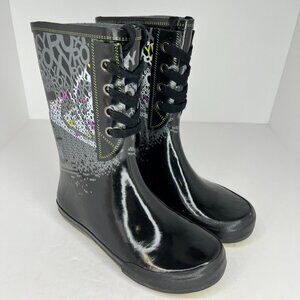 Roxy Womens Drizzle Black Lace Up Rubber Mid Calf Slip On Size 7 Rain Boots