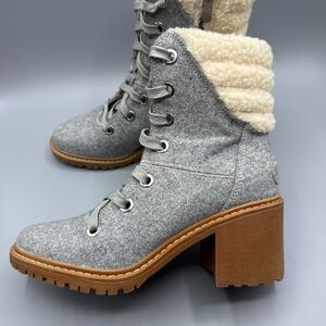 Roxy Women’s Gray Lace-Up Zip Ankle Boots Faux Shearling Lined Block Heel Size 8