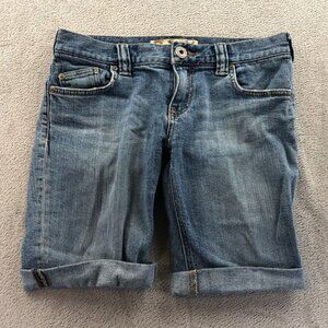 Roxy Womens Jean Shorts Size 3 Embroidered Blue Denim Cuffed Casual Stretch Y2K