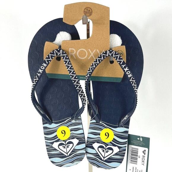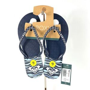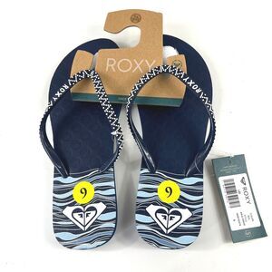Roxy Women’s Lei Flip-Flop Size 9 Logo Blue Sandals New with Tags