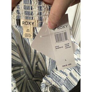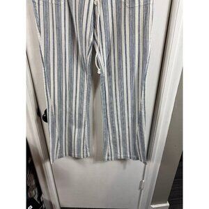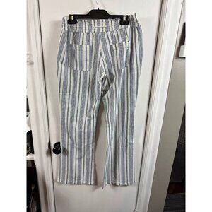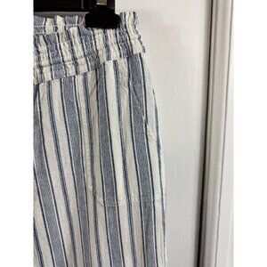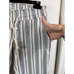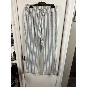 Roxy Women's Oceanside Yarn Dye Pant blue and white striped cotton/linen.