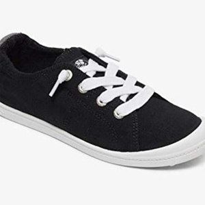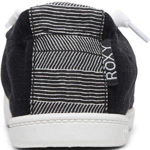 Shoes for women constructed with a textile upper, elasticized top line with embroidered heel detail and Roxy label. Memory foam padded canvas insole with graphic print teddy cloth lining and flexible tpr injected outsole with molded arch detail outsole.