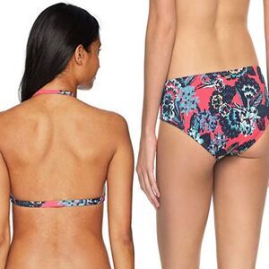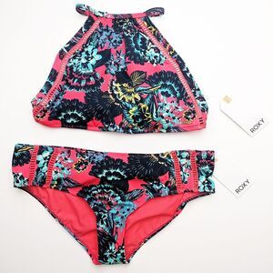 Roxy Women's Salty Shorty Crop Top Tropical Floral 2 Piece Bikini Tankini Large