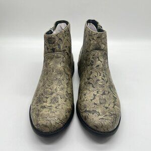 Roxy Womens Size 7 Black And Tan Floral Faux Vegan Leather Ankle Boots Shoes