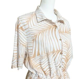 Roxy Women’s Size M Peach Romper Summer Beach Pockets Toast Palm Tree Dreams
