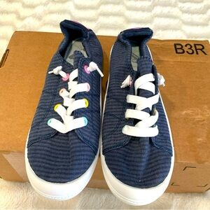 Roxy Women’s Slip On Blue Striped W/ Rainbow Detail Size 5