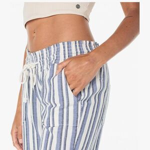 Keywords: Roxy, beach pants, multicolor, wide-leg, high waist, casual, cotton, linen, striped, drawstring, women's pants, pre-owned, comfortable, stylish, embroidered logo.