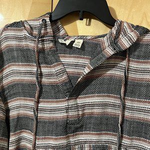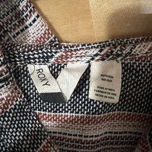 Roxy Womens Sweater XS Extra Small Red Black Aztec Knit Design V Neck Hooded
