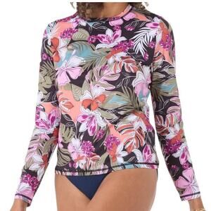 Roxy Women's UPF 50 Sun Protection Rash Guard Floral Long Sleeve Swim Tee-L
