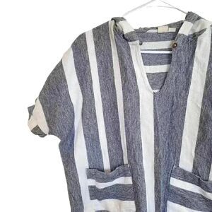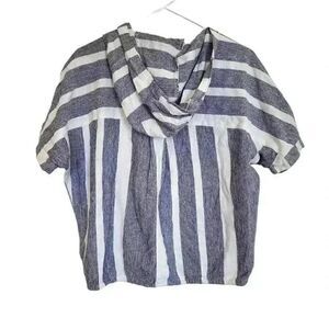 Roxy Women's White & Navy Cotton Large Striped Short Sleeve Hoodie EUC sz XS